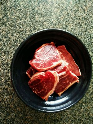 牛仔骨一斤左右。用红酒,盐,蒜片,洋葱柠檬汁腌制。我腌制了一夜。保鲜袋装好,没事就晃晃 。