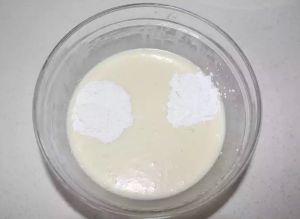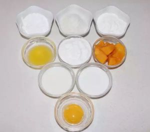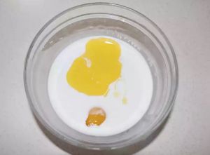 1.椰浆,牛奶,蛋黄,液态黄油和糖粉放一起搅拌均匀