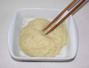 4.蒸熟后用筷子搅拌使其光滑细腻,放冷藏冰箱冷藏1-2个小时