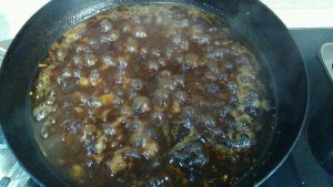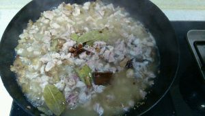 炒匀其他调味品后,加入生抽,陈醋等,开锅后中小火熬制。
