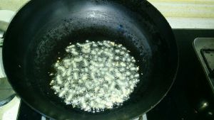锅内加油(如果买的腿肉不够肥,可以多加些油),当油温六成热时加入姜末爆香。