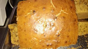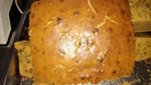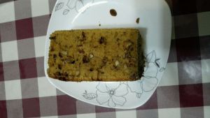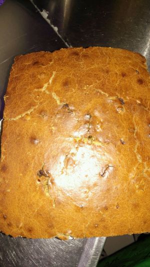 打好蛋液筛入混合好面粉,搅拌均匀,不是很好搅拌,得用力,拌好面糊加油和炼乳搅拌均匀,在加牛奶搅拌均匀加大枣碎,葡萄干和小块核桃仁搅拌均匀,倒入蛋糕模具,我做的是12寸的,烤箱预热10分钟,烤箱160度50分钟。