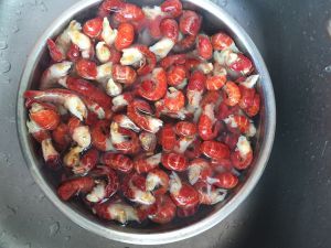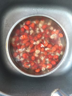 把虾尾解冻,泡一泡,搓一搓,洗一洗!