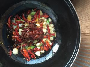 辣酱两勺,郫县豆瓣酱一勺!我用的是四川红牌辣酱,其他辣酱都可以!