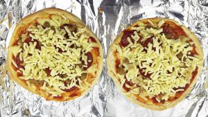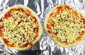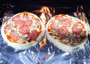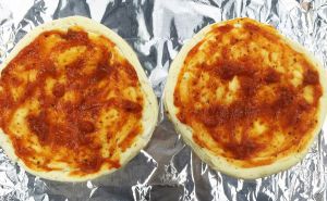 闻到香味时要忍住哦,拿出再撒一层芝士!厚厚一层的那种!再回炉烤五分钟等待芝士融化,期待它的华丽变身吧!