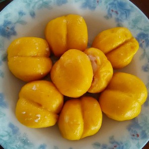 南瓜削皮切块,用高压电饭煲隔水蒸15分钟,拿出用勺子碾压成泥!