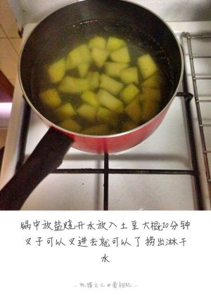 锅中放盐水 烧开水放入土豆 大概10分钟叉子可以叉进去就可以捞出淋干水分