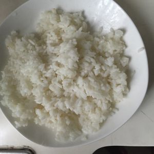 米饭倒入鸡蛋液中再根据个人口味加入适量盐。
