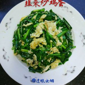 新鲜韭菜择洗干净控水,鸡蛋打开加少量盐搅散待用。