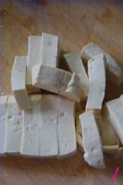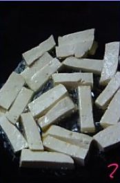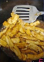 锅内放少许油加热,放姜蒜末爆香,倒入鱼香汁烧至起泡,放入煎好的豆腐条翻炒均匀。