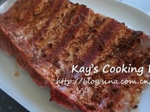 把调料搅匀后,均匀的涂抹在牛排骨的两面,用保鲜膜封住放入冰箱腌一晚上。