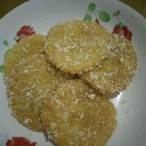 油锅倒入适量的油至七成热,把弄好的面团揉成适量大小粘上面包糠,下油锅炸至金黄即可。