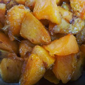 适量油下入地瓜炸,捞出一块用筷子试一试。可以轻松扎进去就可以捞出,然后再一次倒入地瓜炸将近一分钟捞出。