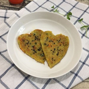 待凝固后脱模继续放面糊 翻面煎至两面金黄即可