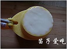 搅拌好的稀面糊静置30分钟,然后入蒸锅,大火蒸15-20分钟即可蒸熟,蒸熟的面糊,用筷子使劲的搅拌至顺滑。然后等待其冷却,就是冰皮了
