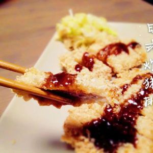 切成8毫米到1厘米宽的块,装盘,淋上猪排酱即可。