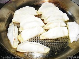 锅里放油,小火煎,可以浇一点水,然后盖上锅盖焖一会,那样锅贴会很软。