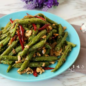 锅内烧油炸芸豆,7成热将芸豆放入~