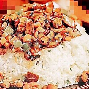 出锅后把肉浇在米饭上,上面再撒少许小葱花就OK了