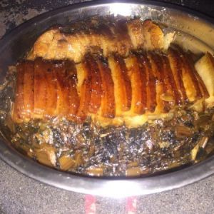 煮熟后捞出抹老抽,下油锅炸猪皮发金黄即可