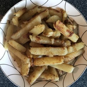 煎至土豆两面发黄时,放入适量盐和孜然粉,翻炒均匀装盘即可。