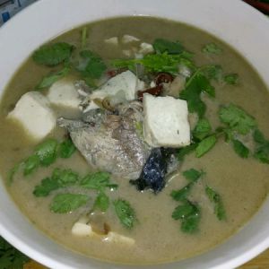 煮到汤色发白后,起锅加入香菜和调味品,即可享用美食了。