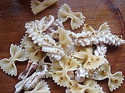 意大利蝴蝶面、鲜虾、鱿鱼卷放在网状电烤盘上抹少许橄榄油烤出香味和花纹;