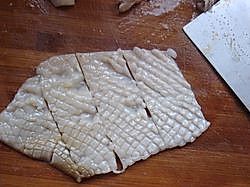 鲜虾洗净,鲜鱿鱼去膜,斜刀打上花刀;