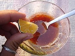用番茄酱、橄榄油、盐、黑胡椒、迷迭香挤进少许青柠檬汁拌匀制成沙拉酱汁;