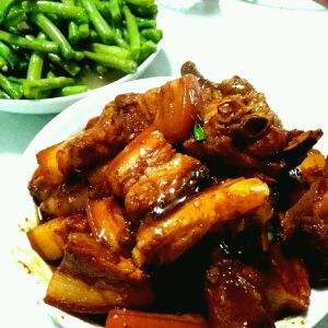 个人非常喜欢用这个酱油烧菜,加两汤勺生抽,两汤勺老抽,一汤勺糖,1.5勺黄酒,切个六七块姜片
