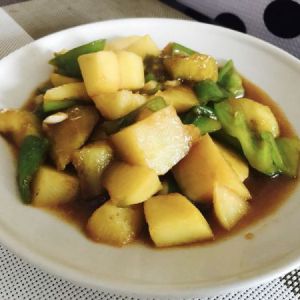 茄子,土豆,尖椒分别切滚刀块,葱蒜切末