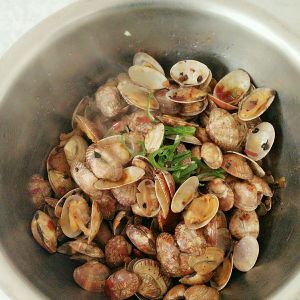 吐好后冲洗一下用开水焯30秒待花蛤微微张口捞出再用水冲洗两遍把泥沙清楚赶紧