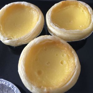 烤箱自动关闭后不要急着打开,先让蛋挞在里面闷大概5分钟左右再取出。不然太快预到冷空气蛋挞中间会塌下。