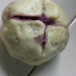 将紫薯泥放入一个一个小面团中 并用刀割出十字架