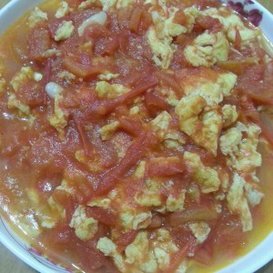 见西红柿差不多都碎成小块和起沙,就加入已炒好的鸡蛋,先用大火炒几下,再关小火让它收汁。见差不多了,就可以加入少许盐、鸡粉,炒均匀,关火。