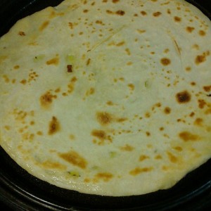 然后把面擀成片状!刷上一层油,撒上葱花和盐。