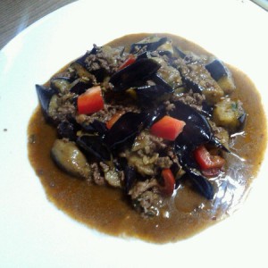 锅内放少许油烧热,加入肉末炒散,加料酒、葱姜蒜末同炒,倒入辣酱,加入上述调料,小火烧5分钟左右,大火收汁后装盘。