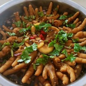 用凉水洗洗干净,放置凉水冰一会(可以使鸡爪肉质更Q弹好吃)