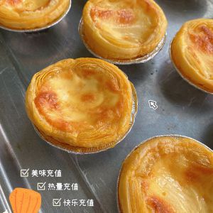 烤箱预热好 放进去烤制!我的烤箱是美的的 180度上下层 30分钟!刚刚好!蛋挞烤到出现挞斑就差不多了!奶香四溢 超级棒的!