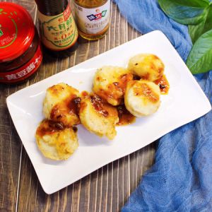 将菇盒装盘摆好,浇上鱼香汁即可;