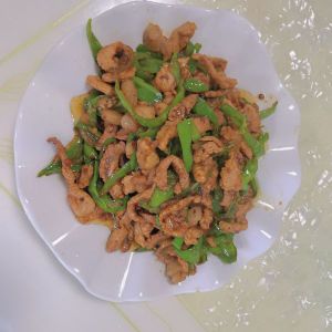 倒入备用的肉丝,加盐,生抽,老抽,蚝油,辣椒粉调味
