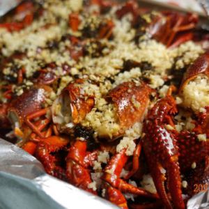 撒上蒜蓉,再浇上少许白酒(料酒也可)