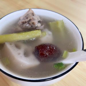 半小时过后加入莲藕、大枣;再过半小时加入苦瓜和盐、胡椒粉;出锅前加入枸杞、小葱和香油。就可以出锅啦!