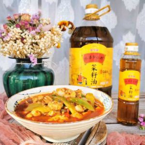 将锅烧热,加入凉油,金色的菜籽油好漂亮