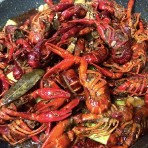 油下锅炒佐料,炒久一点更香,倒入小龙虾翻炒几分钟,倒入啤酒煮10分钟左右,具体看虾的多少和刚刚煮的时间,放配菜炒熟即可。