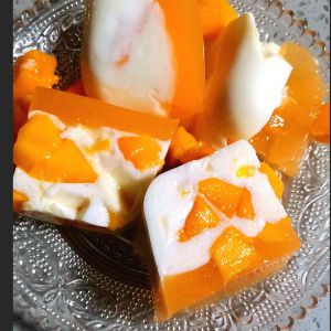 下面的是牛奶部分,上面是芒果汁部分放凉后即可