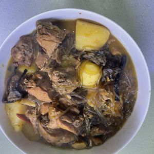 鸡肉熟了后放入蘑菇土豆继续炖一会后在放粉条