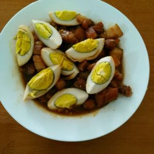 20分钟后,阿迪锅放气后,把五花肉和鸡蛋倒入炒锅中,炖煮汤汁变少即可。