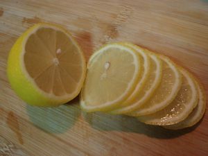 弄两个柠檬,洗干净,切成薄片,然后把籽去掉~~