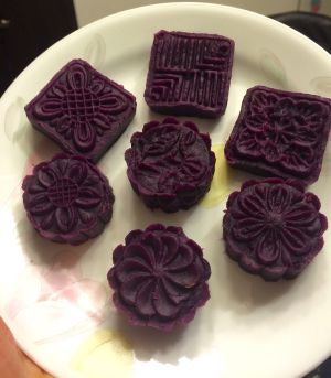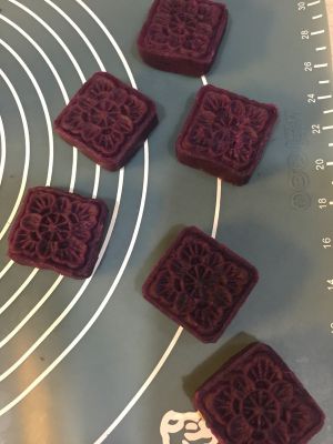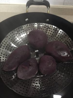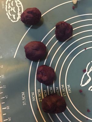 待紫薯蓉不烫手后均匀分成25克左右一个